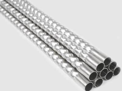 其管體兩端為光滑圓形管,中間部位呈正方體。在中間正方體上設(shè)有均勻凹坑。所述的正方體四周表面設(shè)有均勻凹坑,管體橫截面形狀為高度和寬度相等的正方形狀,相鄰兩面的凹坑呈交錯(cuò)狀,對面凹坑呈平行狀。